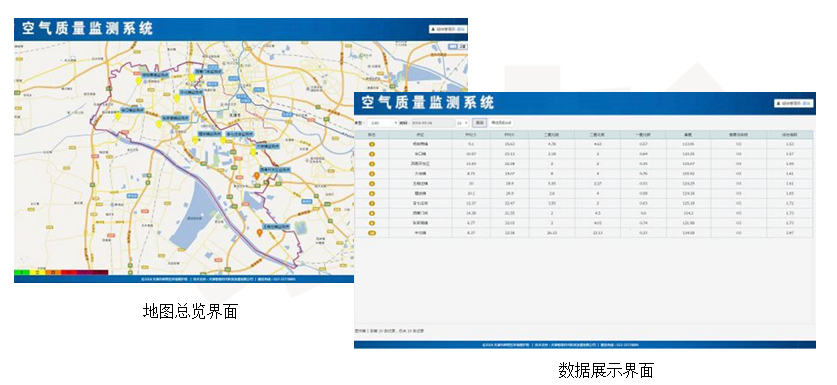 4)精细化空气质量地图,通过高精度的点位布设,利用空间插值分析法绘制精细化的空气质量地图,能够帮助客户掌握更为全面的污染分布状况,并精准的定位污染来源。